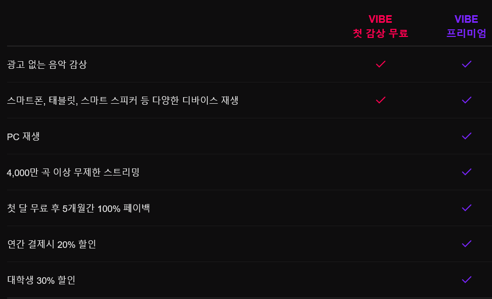 네이버 음악 스트리밍 서비스 바이브 요금제