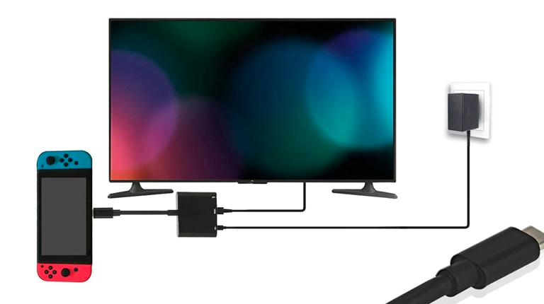 4. 닌텐도 스위치 본체 화면이 꺼진 상태에서 컨버터와 스위치를 연결