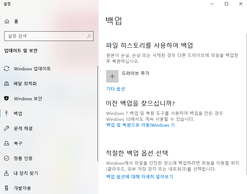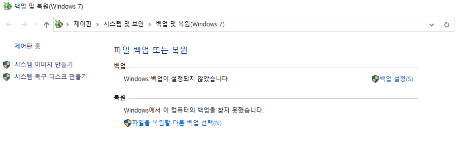 만약 윈도우7 운영체제에서 백업해놓은 파일이 있는 경우 윈도우10에서도 이어서 데이터 백업 및 복구가 가능합니다.