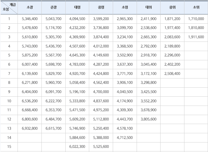 군인 장교 월급