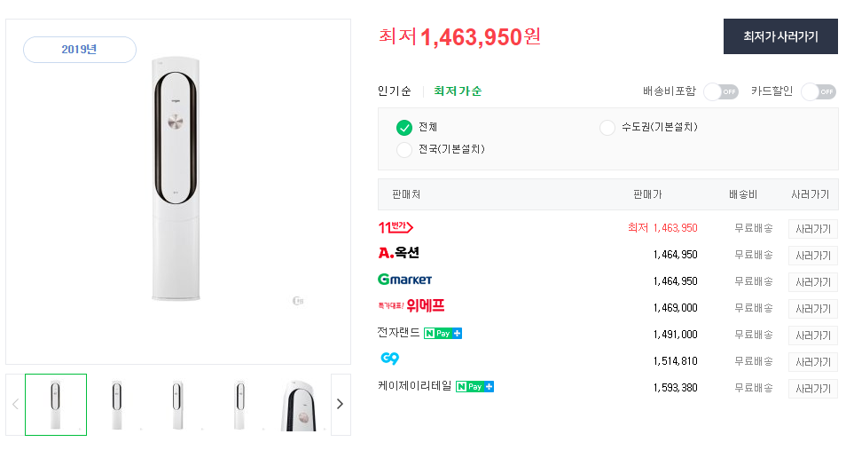 단, 온라인으로 에어컨 구매시에 주의할 점은 이렇게 명시된 판매 가격 외에도 실제 설치시에 추가되는 부가 비용이 더 있을 수 있다는 점입니다.