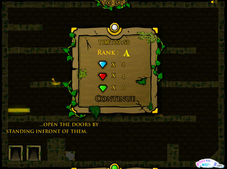 빨간색 불은 빨간색 보석을 모아야 하며 파란 물에 닿으면 죽게 됩니다. 반대로 파란색 물은 파란색 보석을 모아야 하며 파란색 물은 밟을 수 있지만 빨간색 용암에 닿으면 죽게 되구요. 초록색 물에는 둘다 닿으면 죽으니 피해야 합니다.