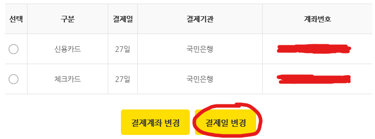 단, 결제일을 변경할 경우 일시불, 할부, 현금서비스 등의 이용기간 변경에 따른 수수료 금액이 바뀔 수 있으니 결제일을 변경하기 전 반드시 해당 부분에 알아보시는게 좋습니다.