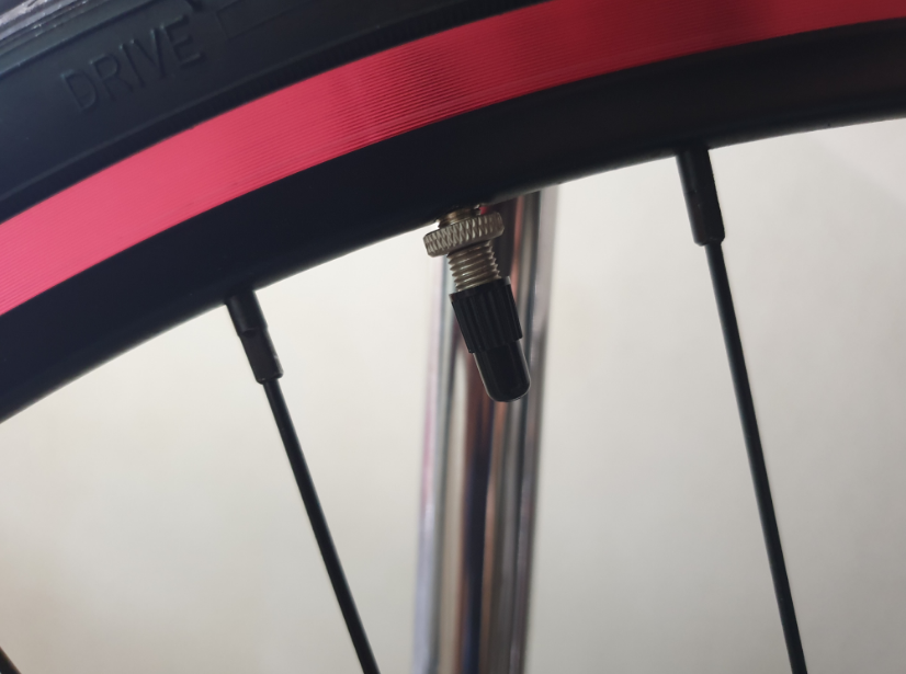 프레스타 공기주입구는 위처럼 밸브 캡을 열고 나면 끝에 너트가 조여져있습니다. 바람을 넣으려면 이 너트를 반대편 끝까지 풀어줘서 공기주입구를 열여줘야 합니다. 공기주입을 마치고 나면 다시 너트를 타이어쪽으로 조여줘야 하구요.