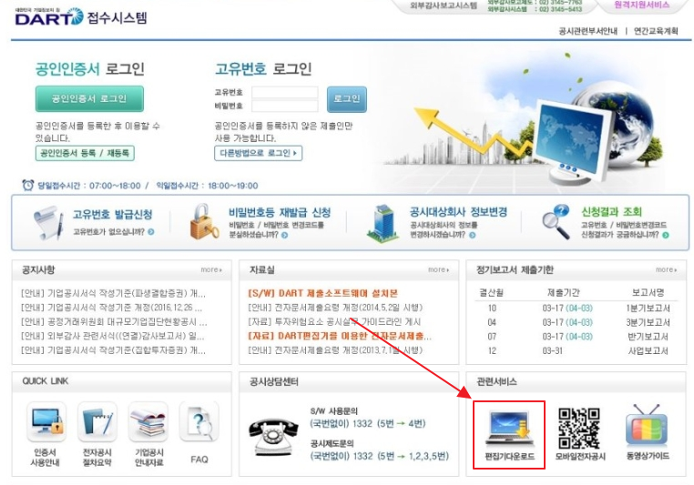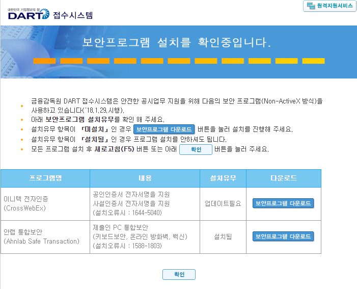 보안프로그램을 설치하고 나면 전자공시 접수시스템 홈페이지에 들어갈 수 있습니다.