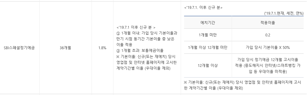 sbi스페셜 정기예금 예금금리